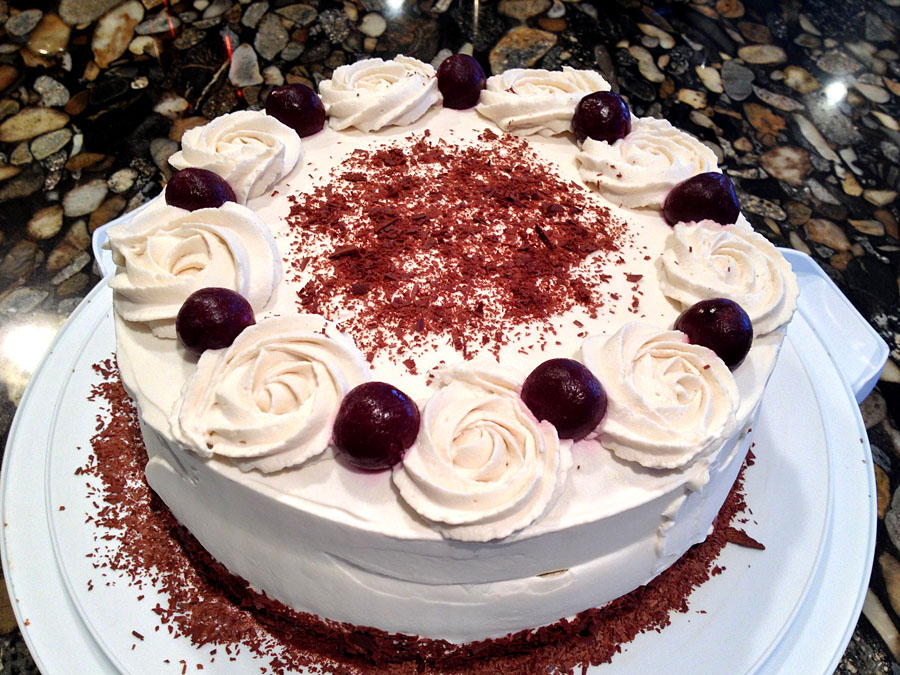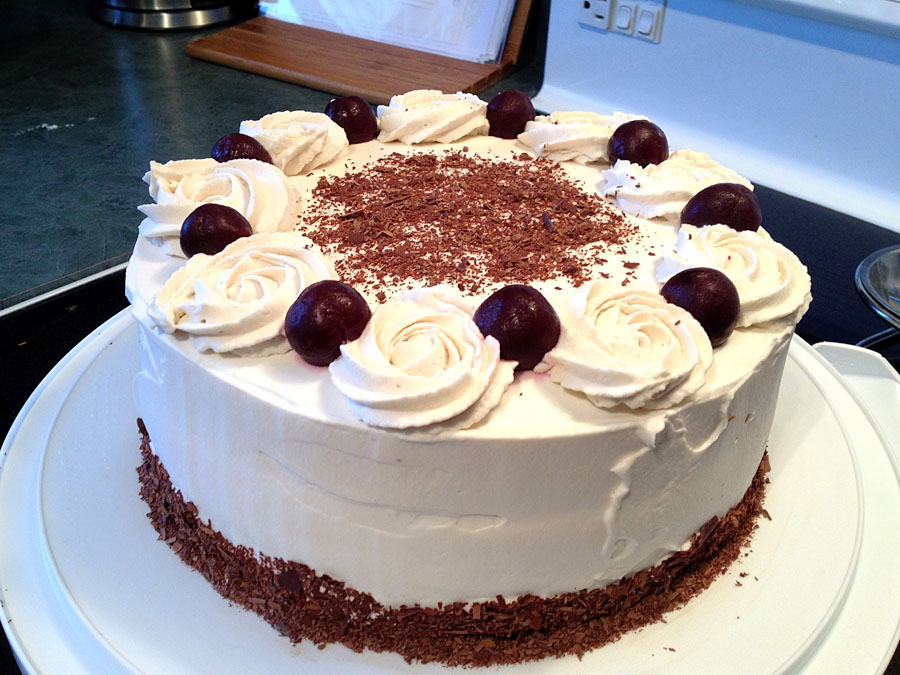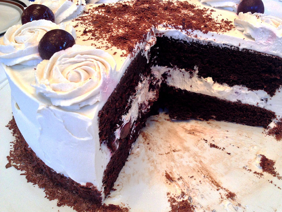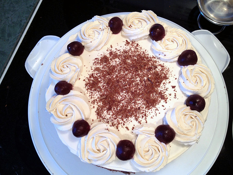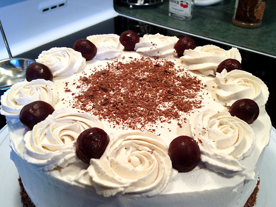 So then I was in a pickle. The supper was on a Friday, and I work full-time during the week. I started looking around, and everything I found was too complicated, until I came across the obvious answer: Black Forest Cake.