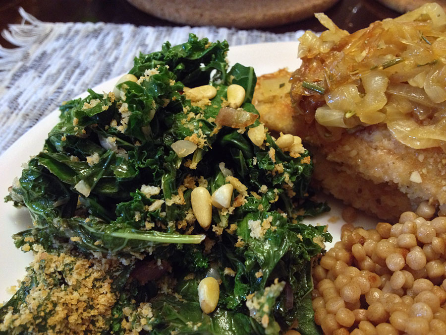 Sautéed Kale Salad with Panko and Pine Nuts